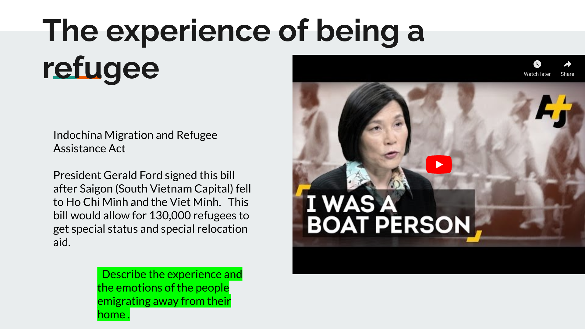 1. Include the push factor: Refugee crisis of the Vietnam war