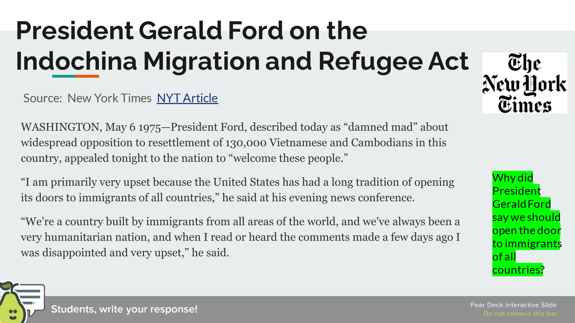 Why did President Gerald Ford say we should open the door to immigrants of all countries?