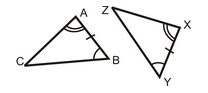 The two triangles below are congruent by Angle, Angle, Side (AAS). Write the congruence statement.