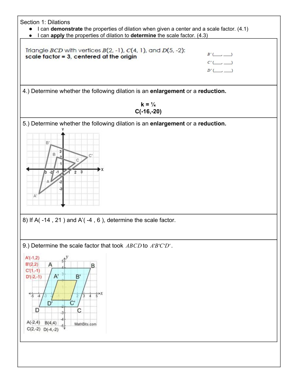 What would C(4,1) be after a dilation with a scale factor of 3?
