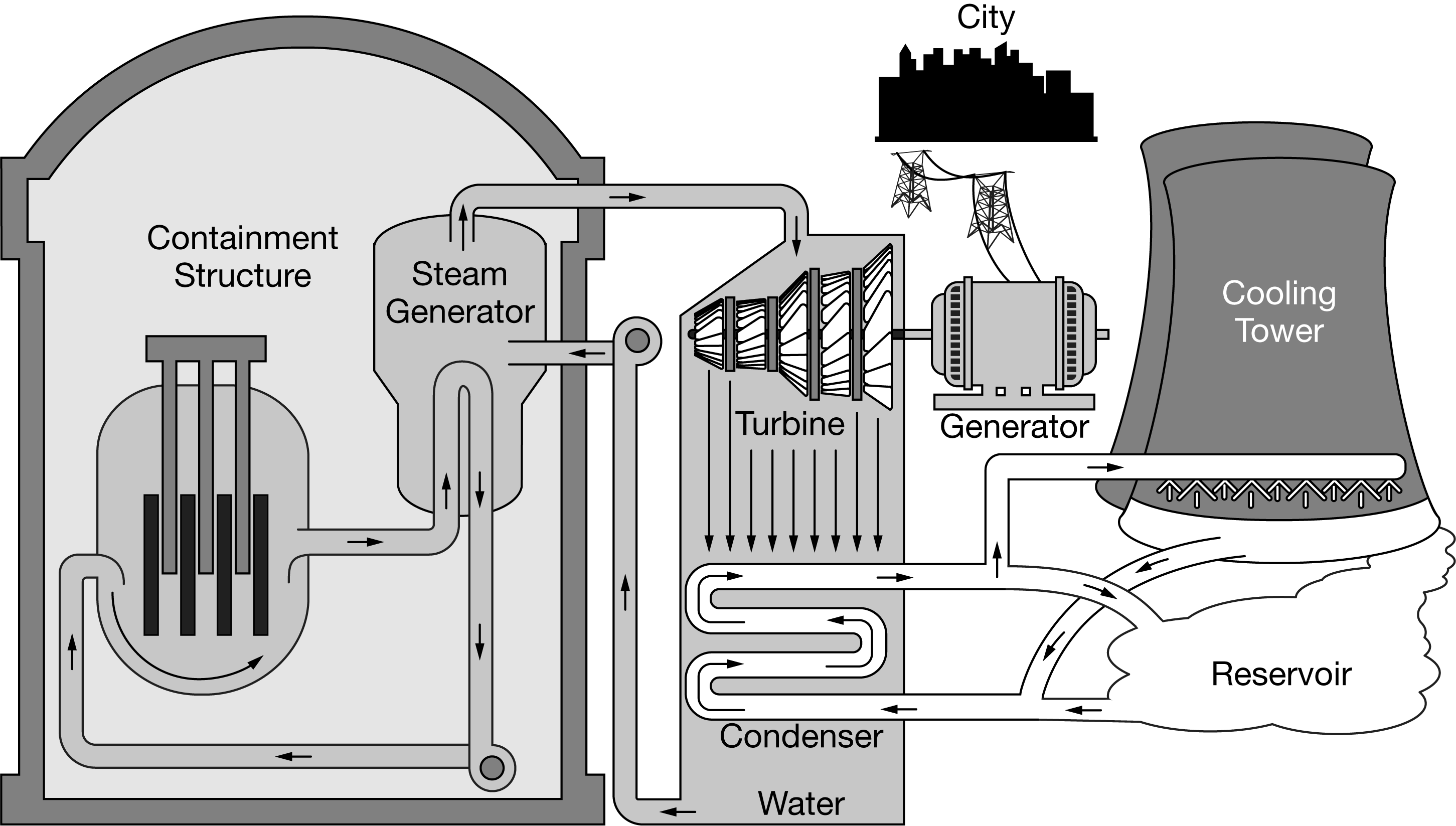 The diagram shows a power plant designed to generate electricity for a nearby city.