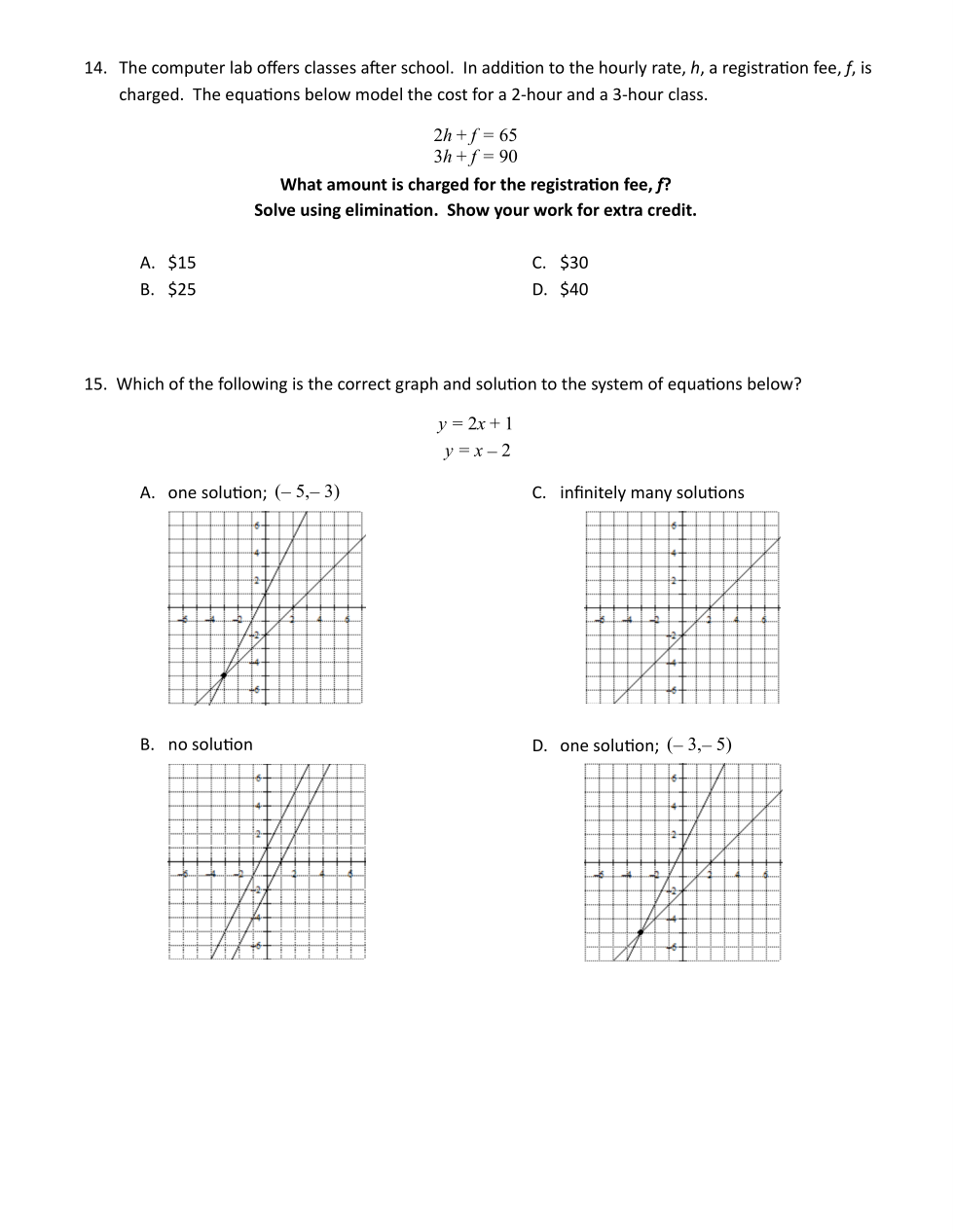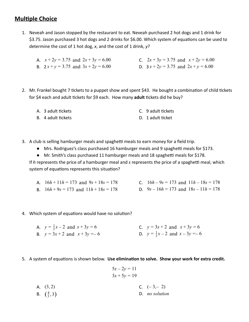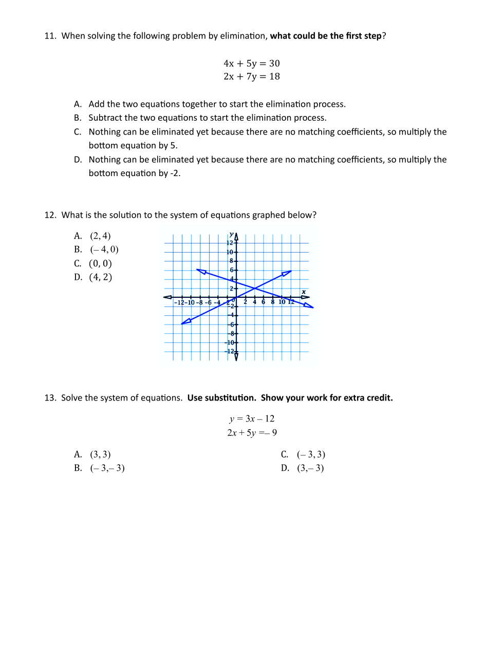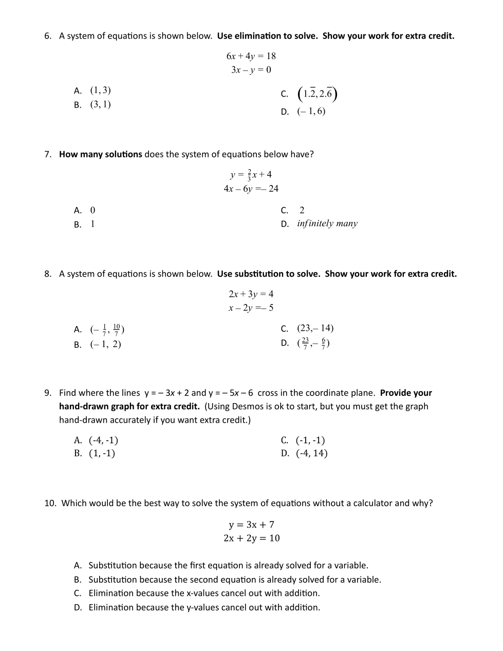 Correctly solve by elimination for extra credit. Show your work.
