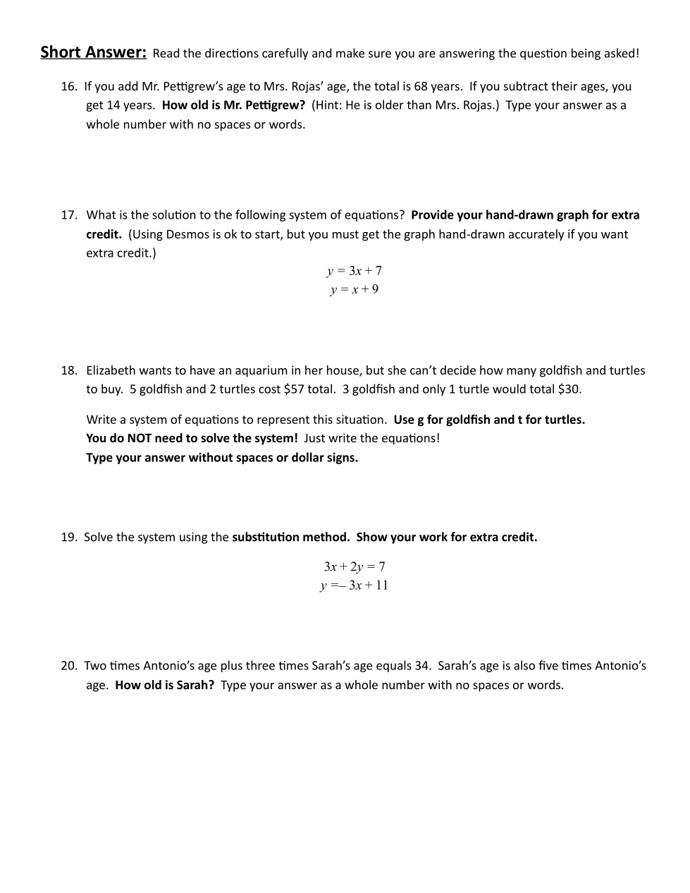 Correctly solve by substitution for extra credit. Show your work.