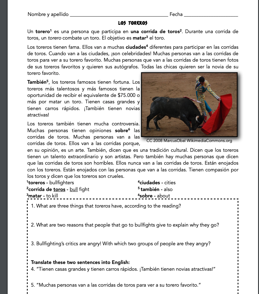 Translate into English: Muchas personas van a las corridas de toros para ver a su torero favorito.