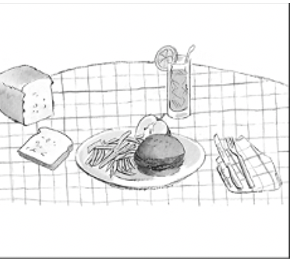 Teresa y yo le trajimos una hamburguesa a Úrsula.
