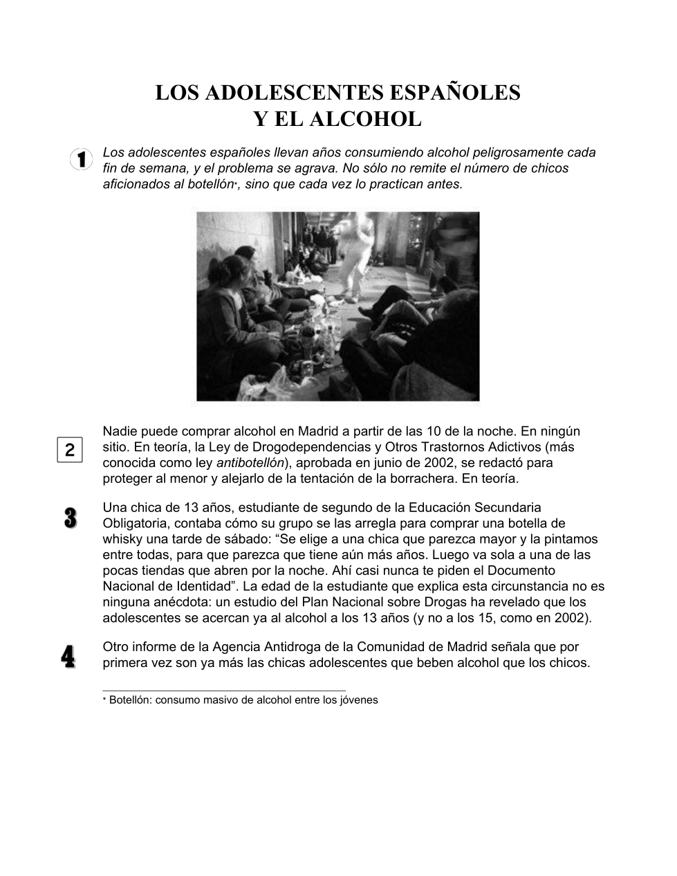 Bi1_U5 Texto bi Los adolescentes espaƱoles y el alcohol