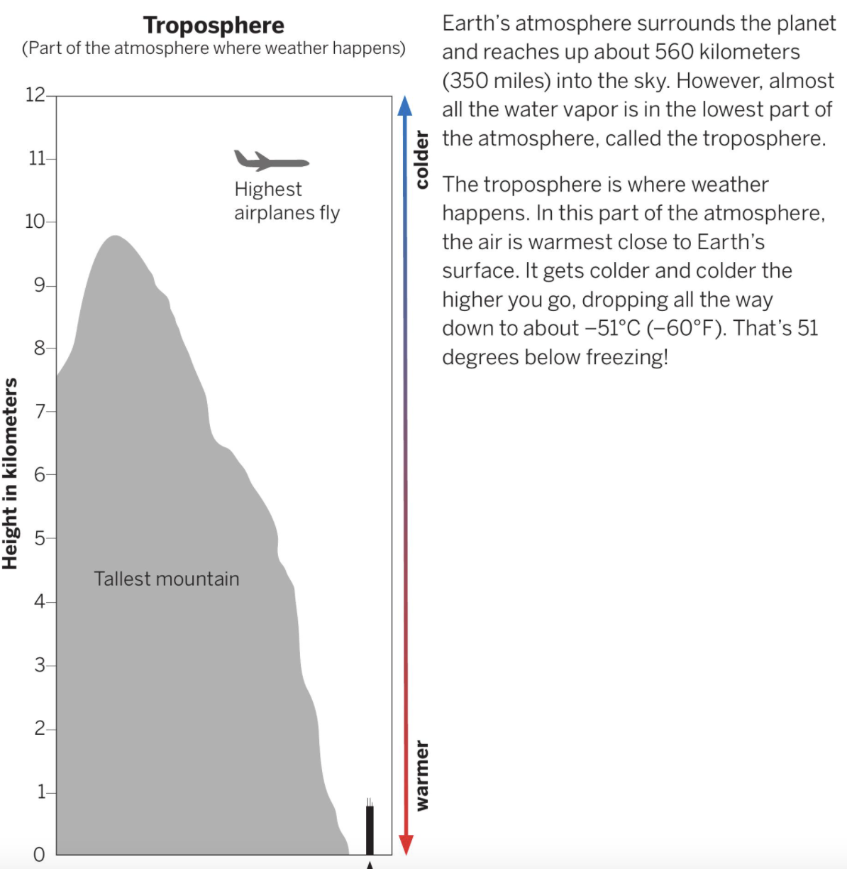We’re going to create models of two different heights in the atmosphere to think about what happens to water vapor up high in the atmosphere compared to lower down in the atmosphere.