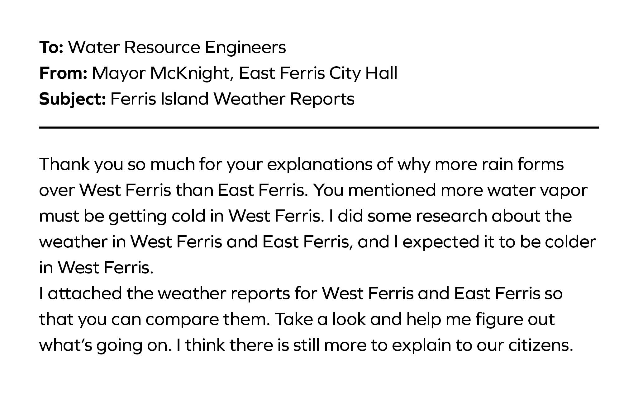 These temperatures are measured at Earth’s surface, which is the bottom of the atmosphere. Today, we’ll investigate the atmosphere to see how it could be influencing the weather in East Ferris and West Ferris.