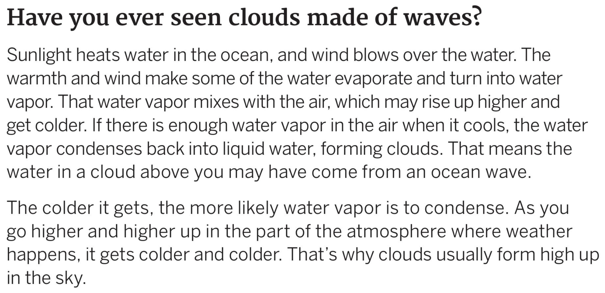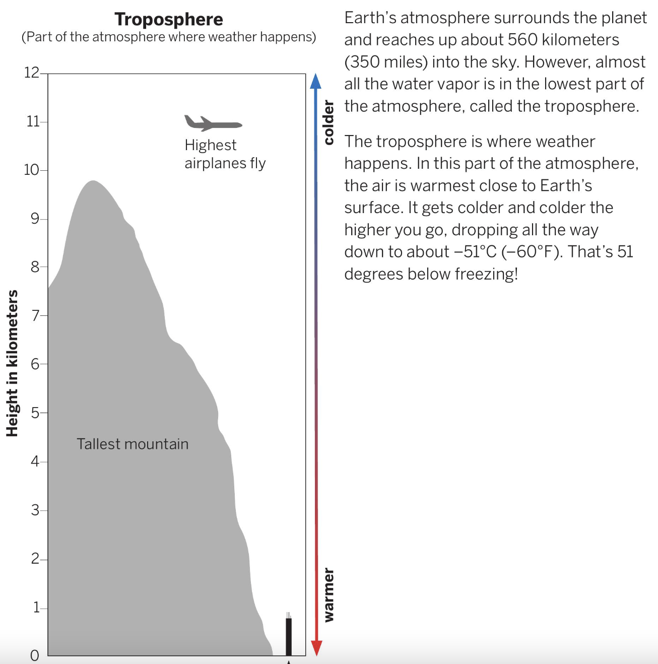 We’re going to create models of two different heights in the atmosphere to think about what happens to water vapor up high in the atmosphere compared to lower down in the atmosphere.