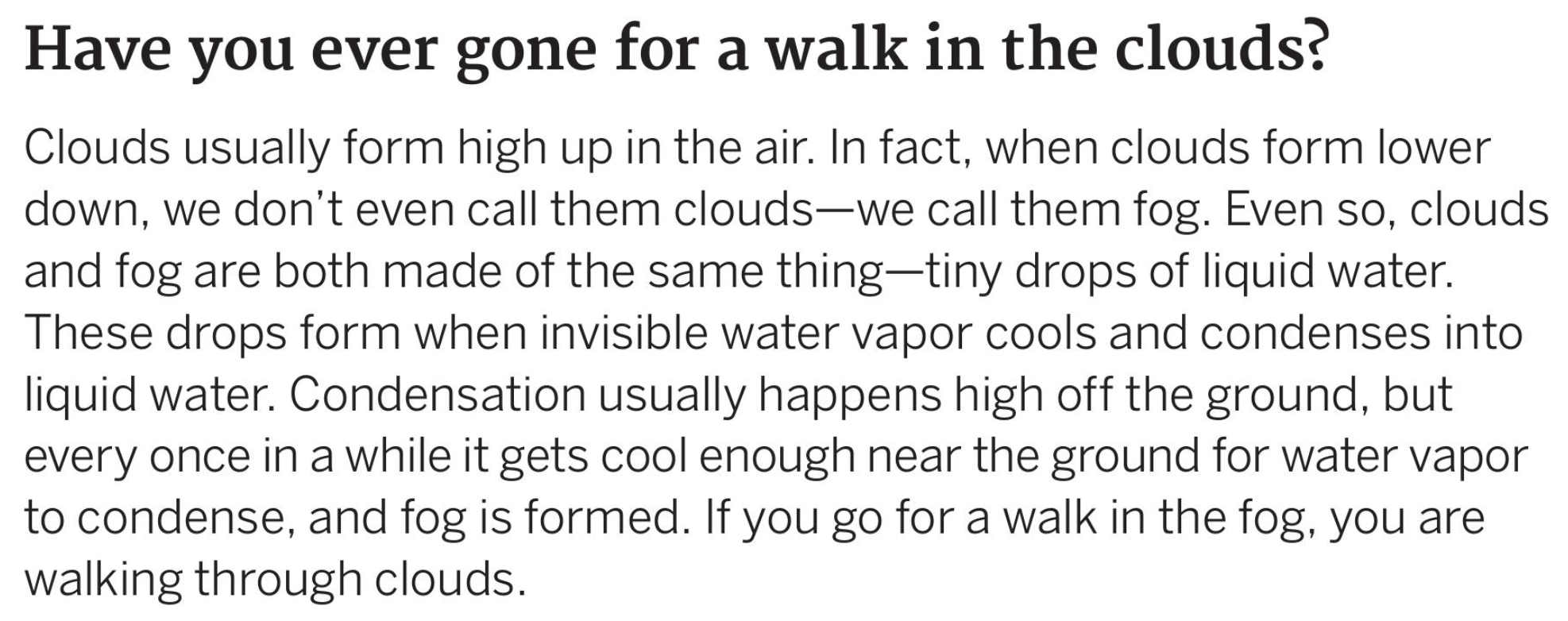 Check For Understanding: Condensation mostly happens higher in the atmosphere or lower in the atmosphere? Explain your answer.