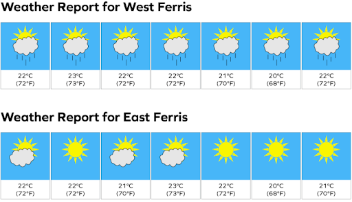Sentence starter: The temperatures of East Ferris and West Ferris are _______________