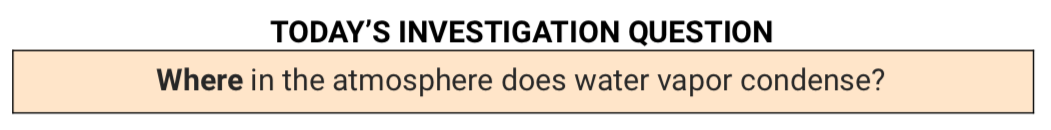 Scientists and engineers collect and analyze data, which are observations or measurements recorded in an investigation. Today, we’ll use our simulation to investigate where water vapor condenses and record data as we go!