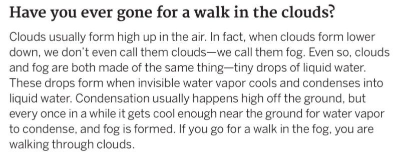 Sentence starter: Condensation happens higher in the atmosphere because ___________________