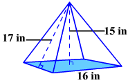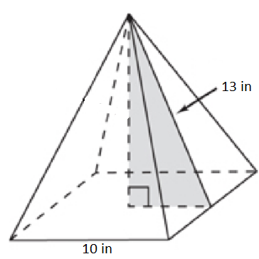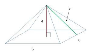 of the square based pyramid. The pyramid is measuered in feet. Use your answers from #1 and #2 to help.