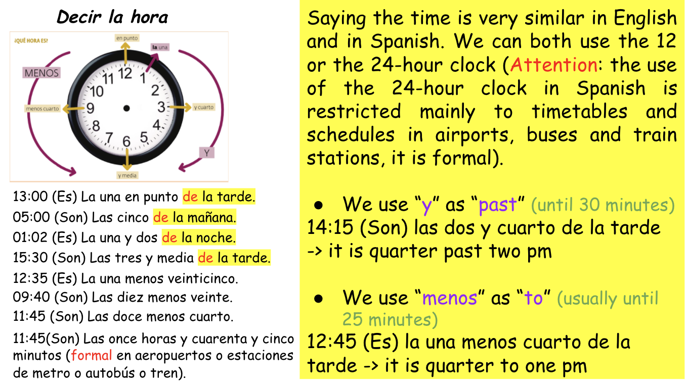 ¿A qué hora terminan las clases? | arrow_right_alt | When do the lessons start? |