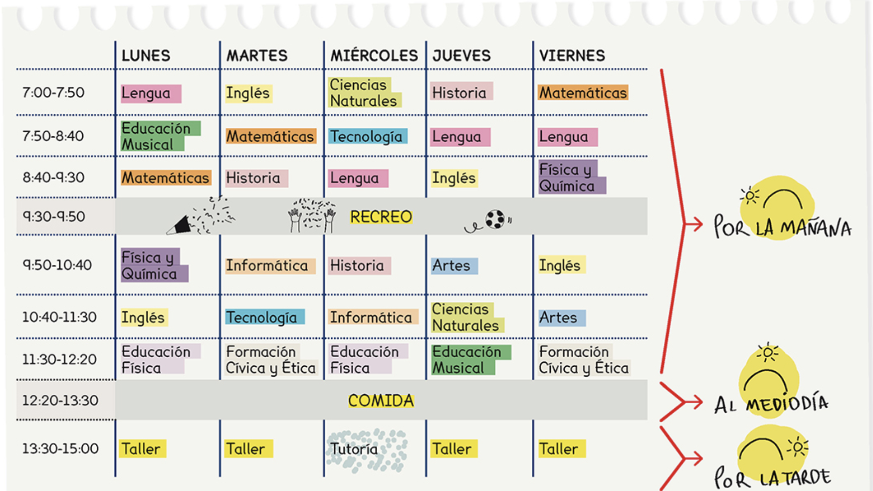 ¿A qué hora empiezan las clases? | arrow_right_alt | When does the Mathematics lesson start on Fridays? |