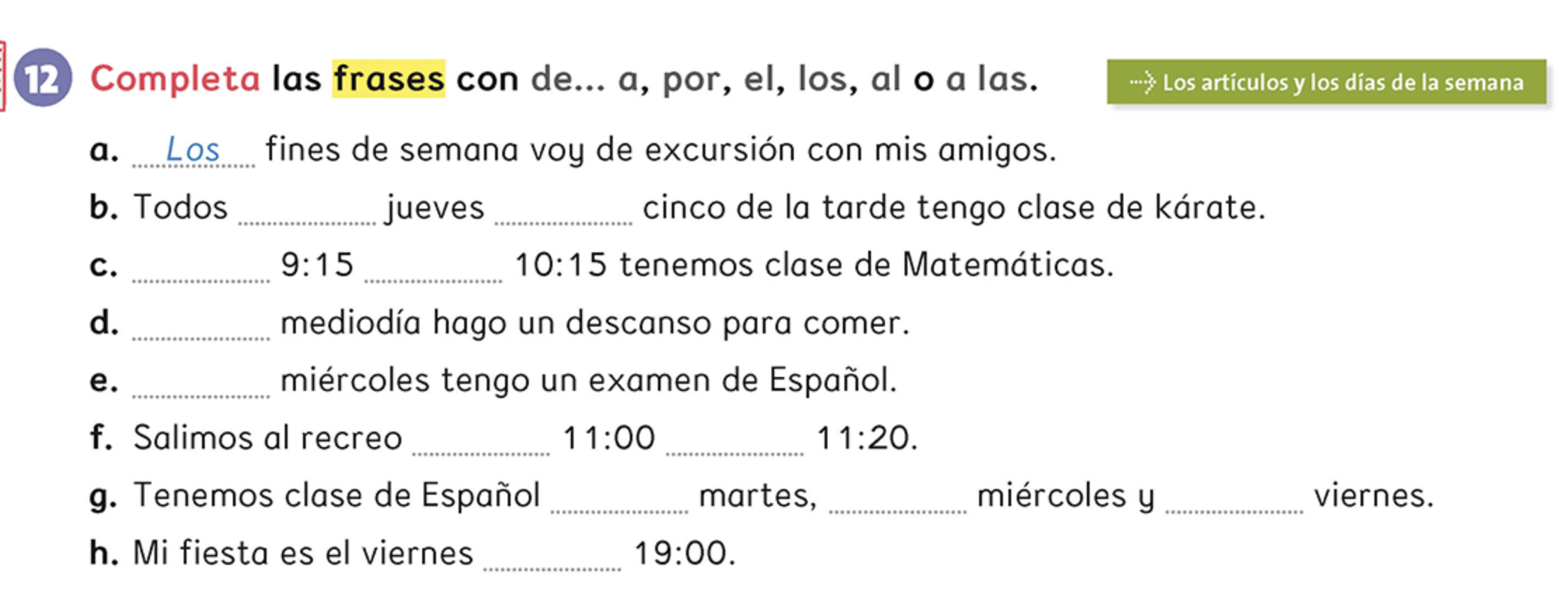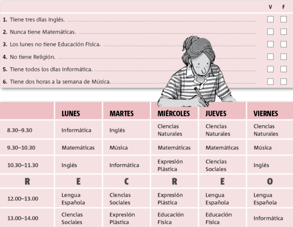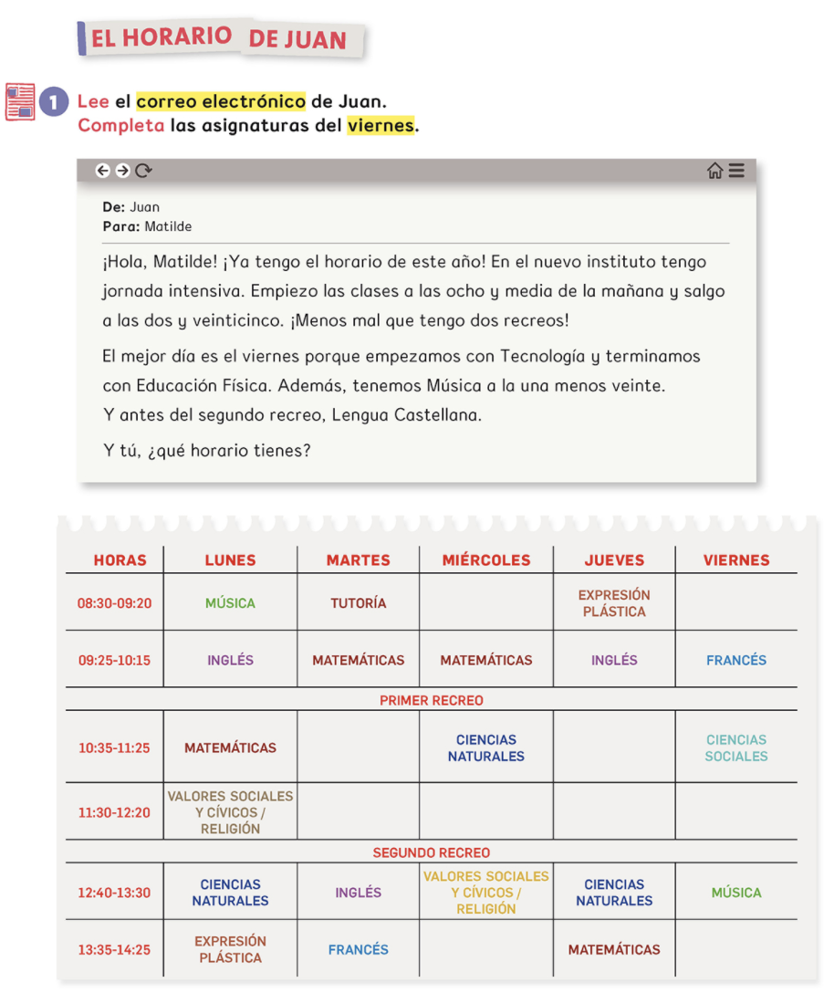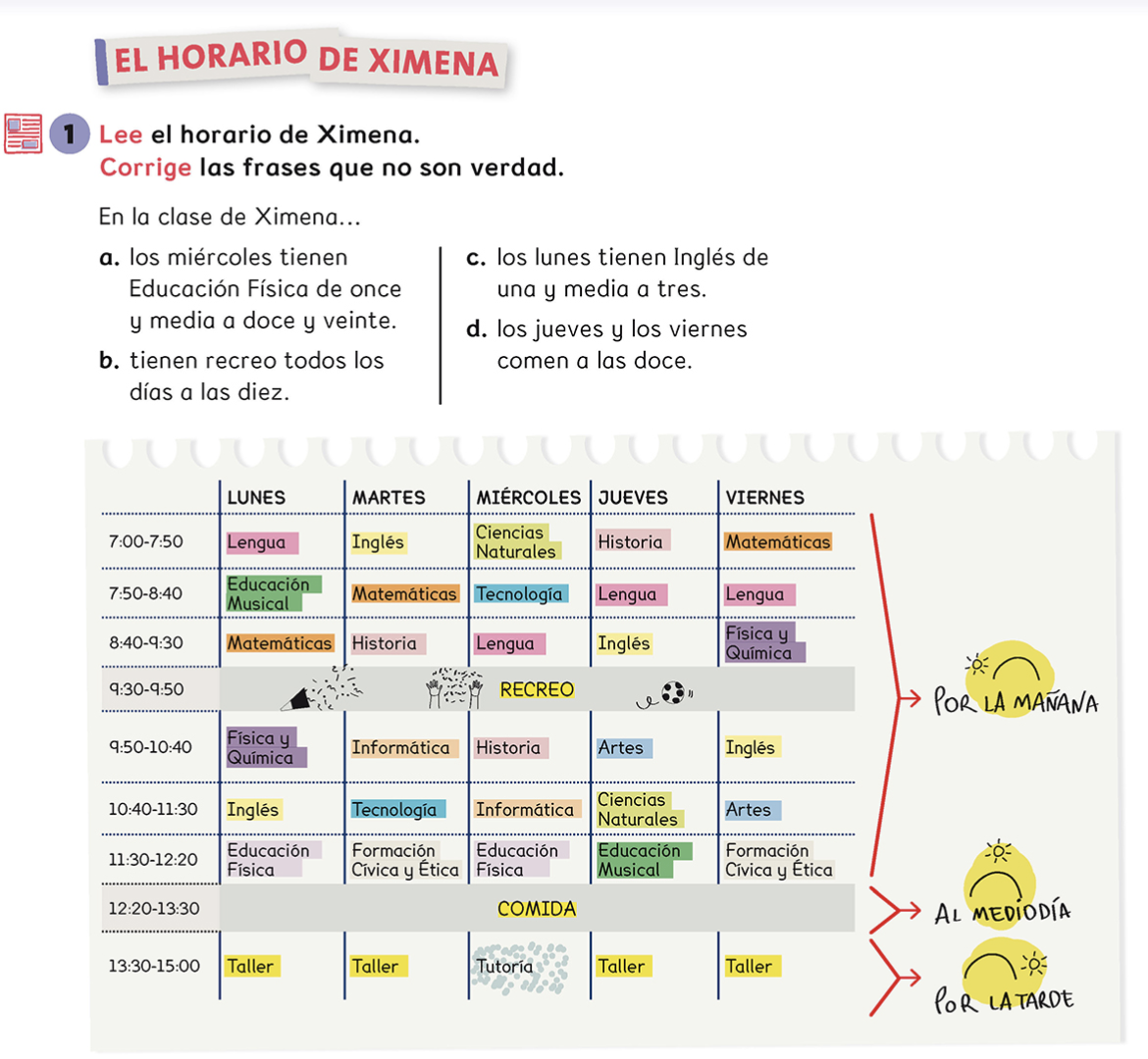 ¿A qué hora termina tu clase de Inglés los viernes? | arrow_right_alt | Tenemos Lengua Española. |