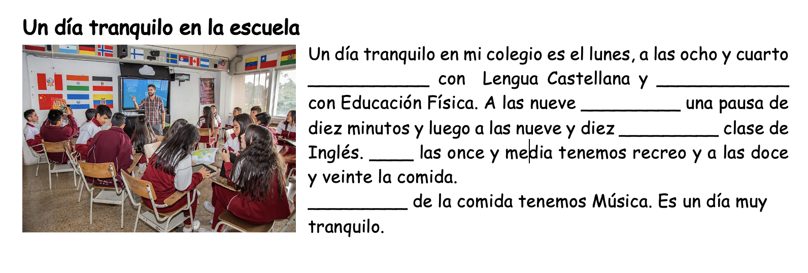 Ahora escribe tu texto. Describe cómo es un día tranquilo en tu colegio.