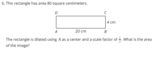 Draw the dilated rectangle using the Show Your Work tool. Type the new area (including units) into the text box.