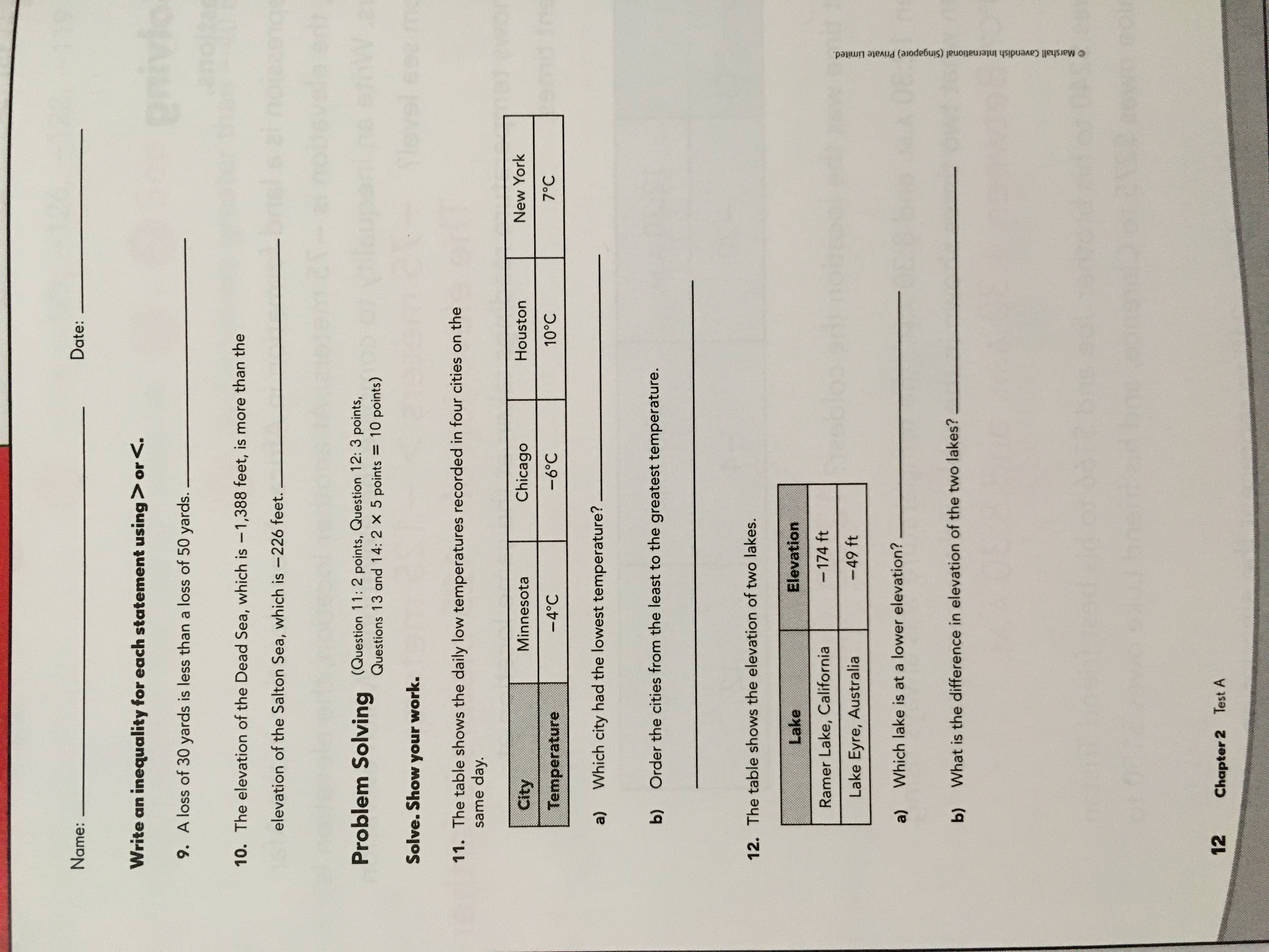 Draw a VERTICAL number line. Estimate where the following numbers should be placed with tick marks on that number line: -8, -6, -2, 1, 3, 4.