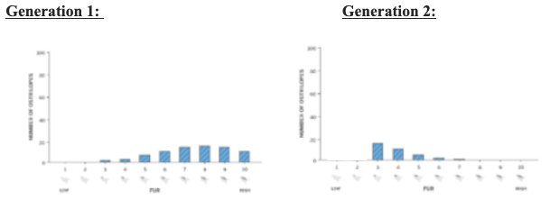 "Based on the histrograms I can see tha the differences from Generation 1 to Generation 50 was ...