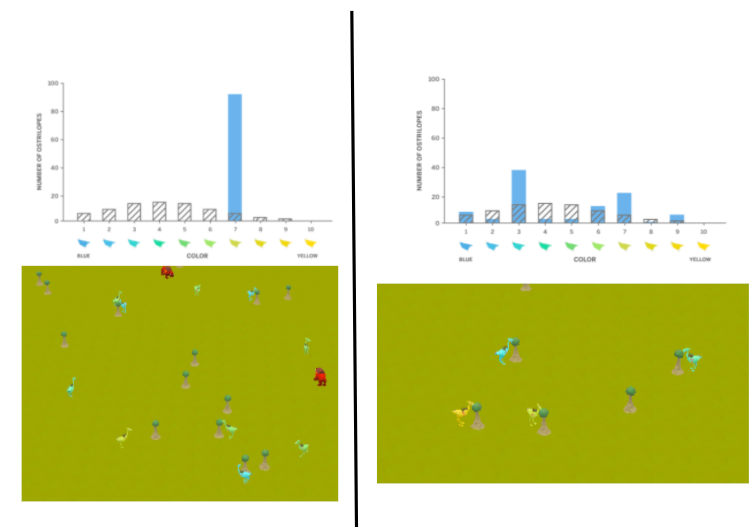 Based on the information above, how can you explain why there are surviving traits in the first graph but no surviving traits in the second?