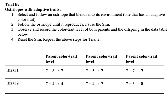 If the ostrilope you are following gets eaten before it reproduces, select and follow a similar ostrilope.