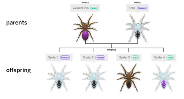 Press Reset in the Sim, select an ostrilope with another color trait from the table below, and press Play to repeat your observations.