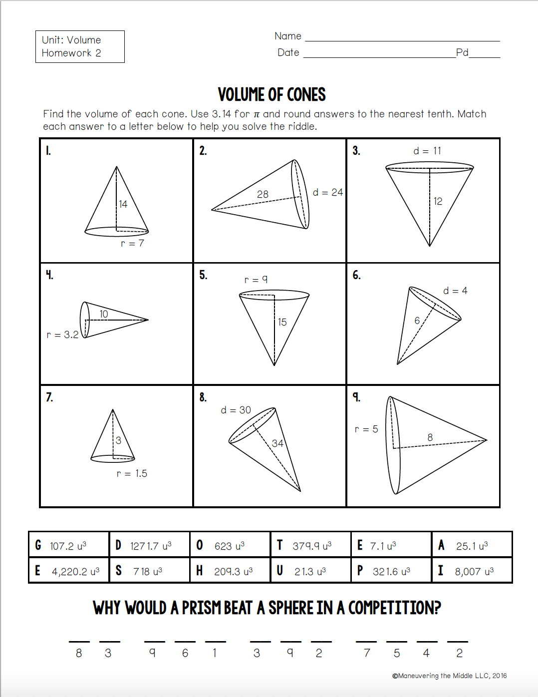 DMS U10HW2: Volume of Cones