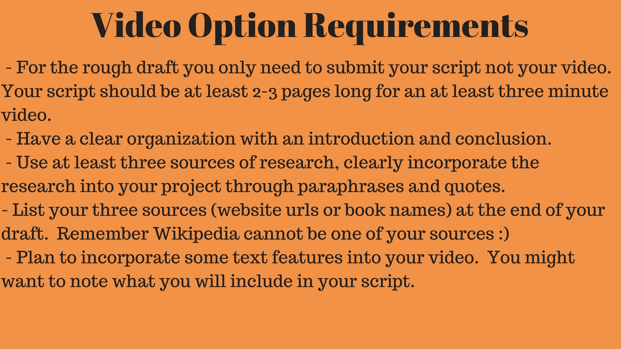 1. Does your rough draft fit all of these requirements? What do you still need to incorporate in order to fulfill all the requirements needed for full credit on this assignment?