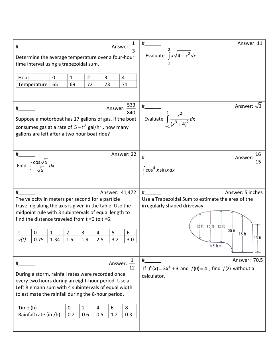 Hint: To find the average temperature, divide the trapezoidal sum by 4.
