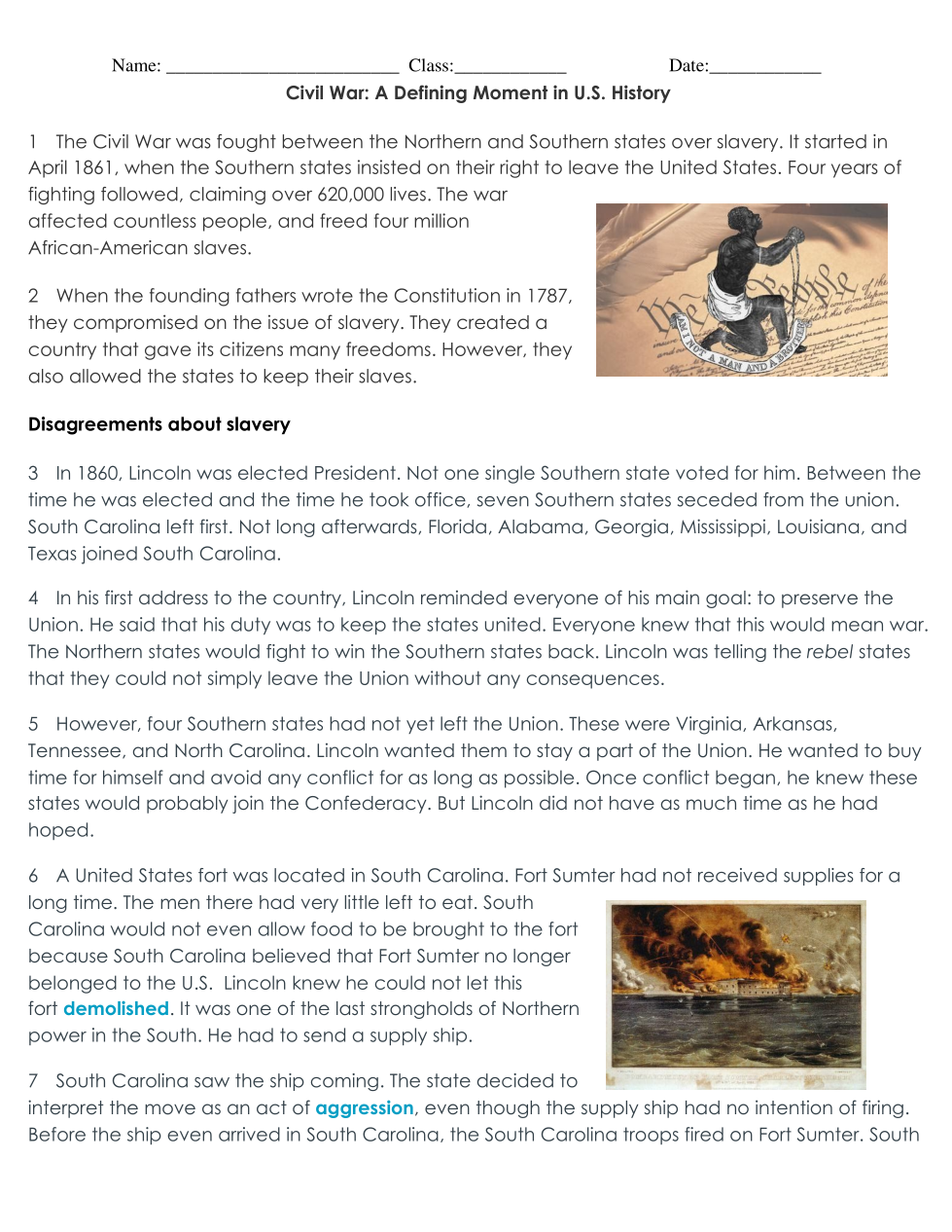 4. Why didn’t South Carolina allow food to be brought to Fort Sumter?