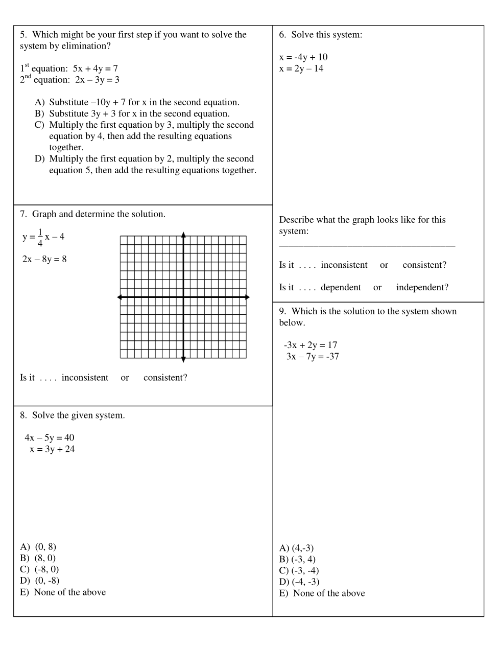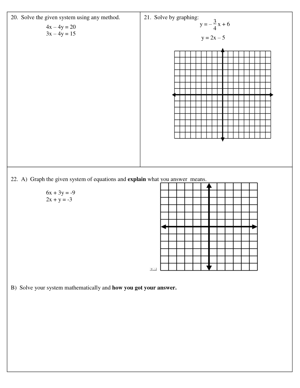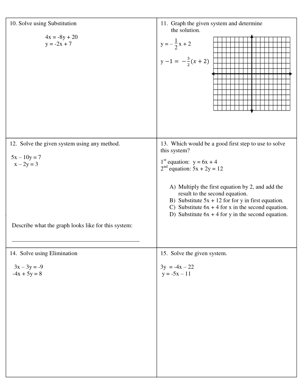 Solve the system in #22 by using Elimination or Substitution. What does the last step look like after you are done solving the system?