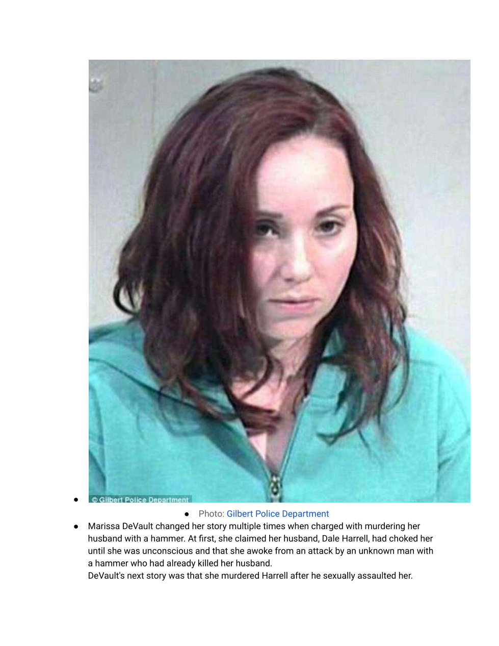 Marissa DeVault changed her story multiple times when charged with murdering her husband with a ___________________.