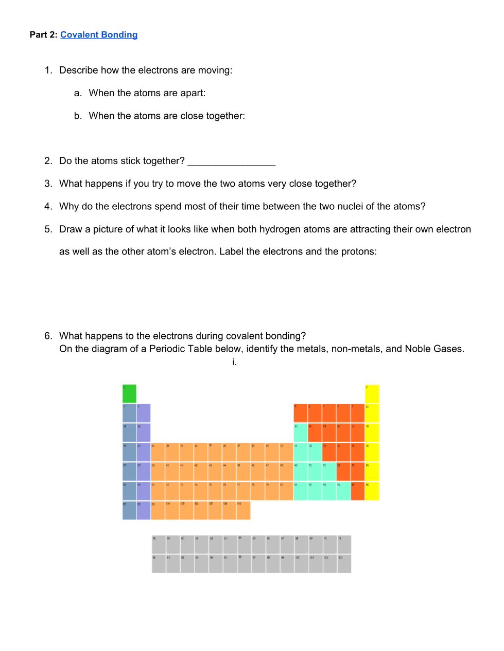 On the diagram of a Periodic Table below, identify the metals, non-metals, and Noble Gases.
