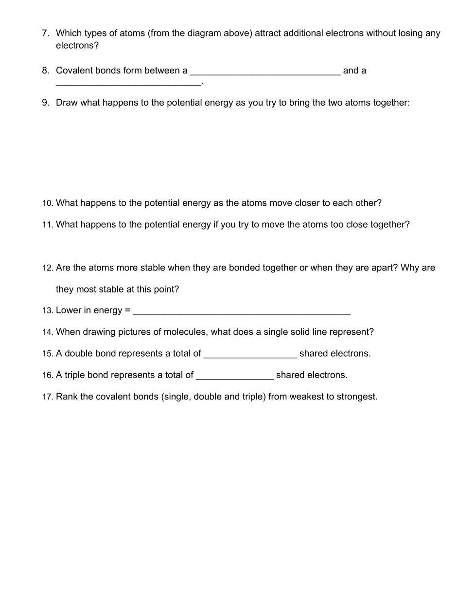 Draw what happens to the potential energy as you try to bring the two atoms together: