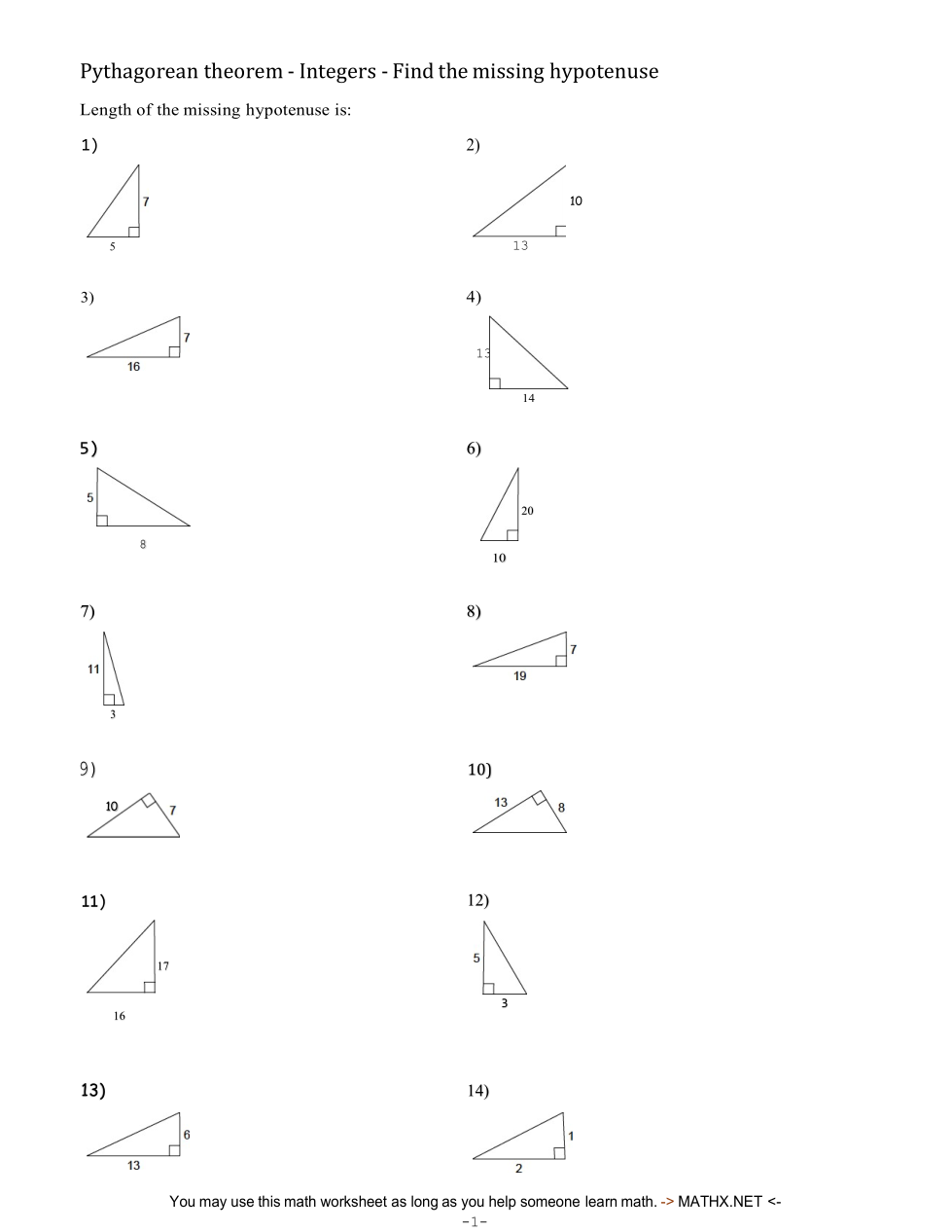 a. Pythagorean Theorem Finding Missing Hypotenuse
