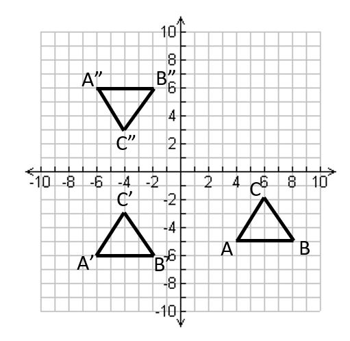 Perform the transformations below in the order listed, give the coordinates of L'', M'', N'', and then graph both \triangle{L'M'N'} and \triangle{L''M''N''}.