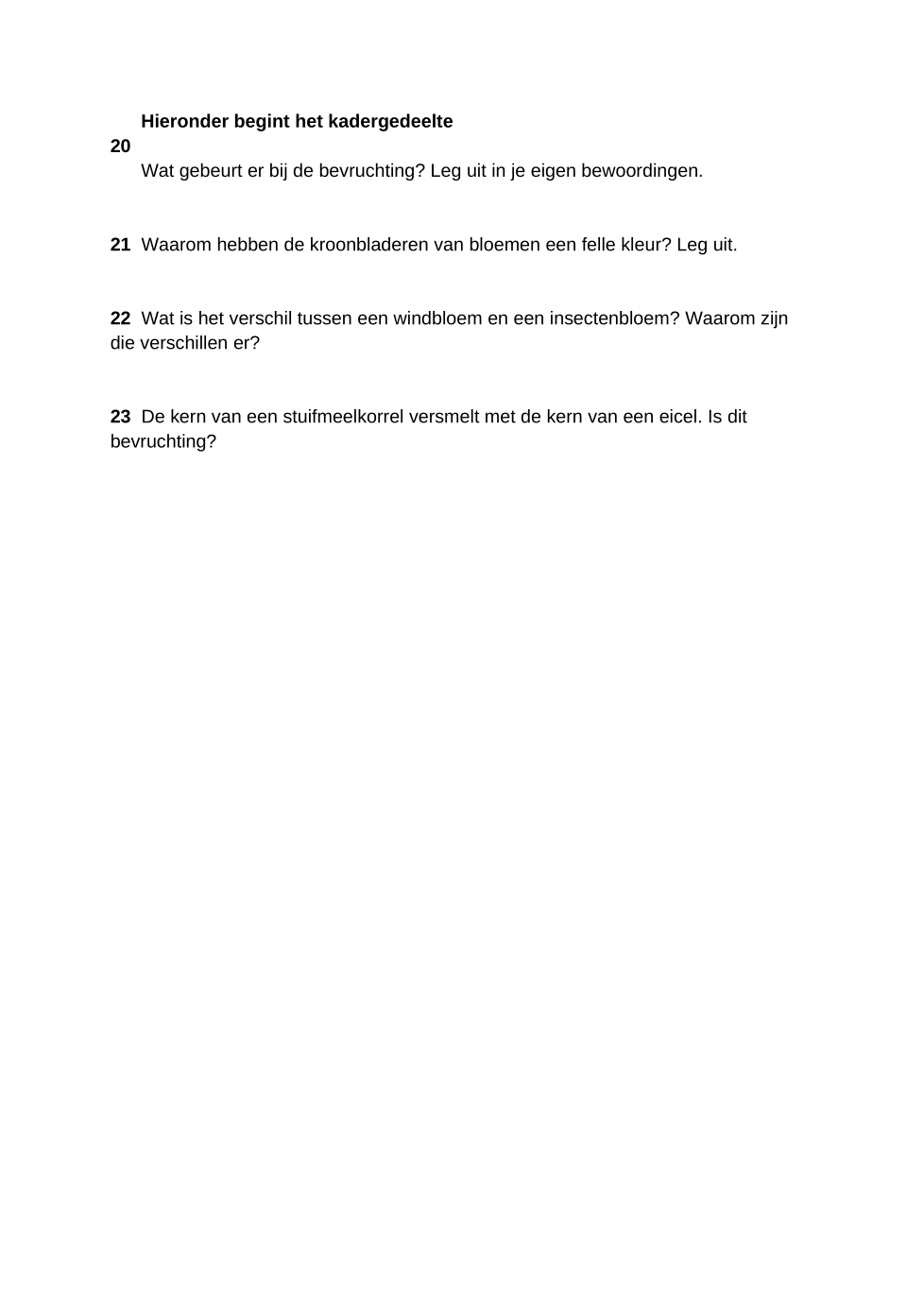 Na de bevruchting verandert het zaadbeginsel van een bloem. Wat ontstaat er uit het zaadbeginsel?