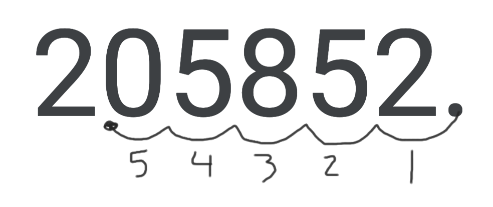 3. Count how many "hops" it takes to move to the right of the first digit. That is your exponent.