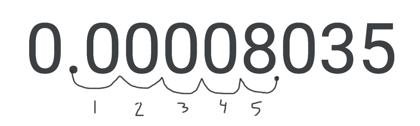 3. Count how many "hops" it takes to move to the right of the first non-zero digit. That is your exponent.