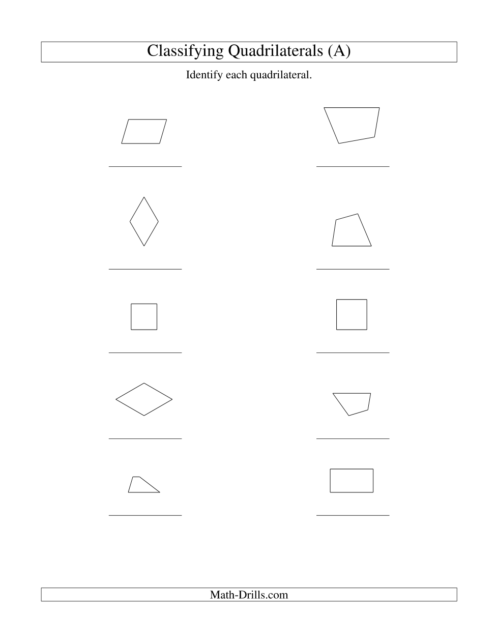 Classifying Quadrilaterals (A)