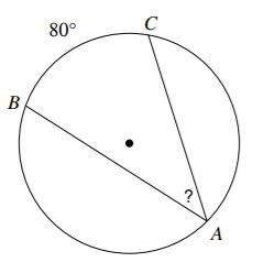 Find the inscribed Angle A in this figure. Select the correct value.