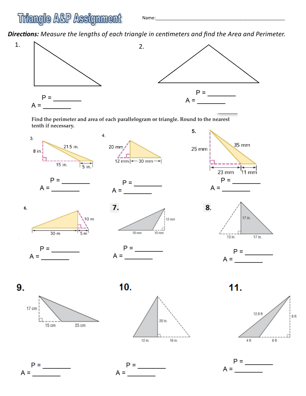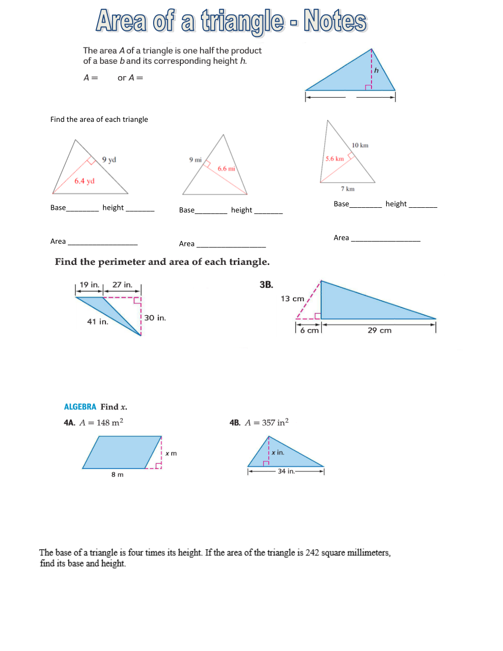 Hint: The base length of this triangle is 5in. The height of this triangle is 8 in.