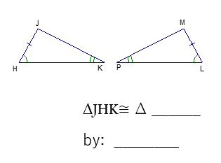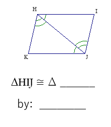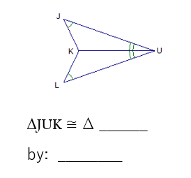 Complete the congruency statement and choose the correct postulate which makes these triangles congruent.