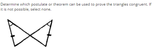 Determine which postulate or theorem can be used to prove the triangles congruent. If it is not possible, select none.