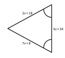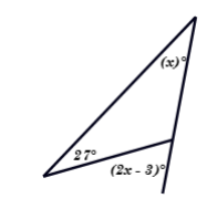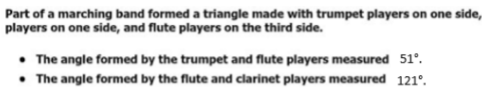 BONUS: The measure of a base angle of an isosceles triangle is 54 degrees. What is the measure of the vertex angle?
