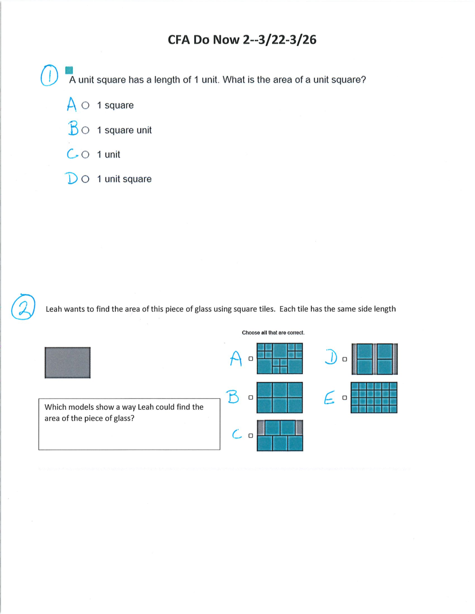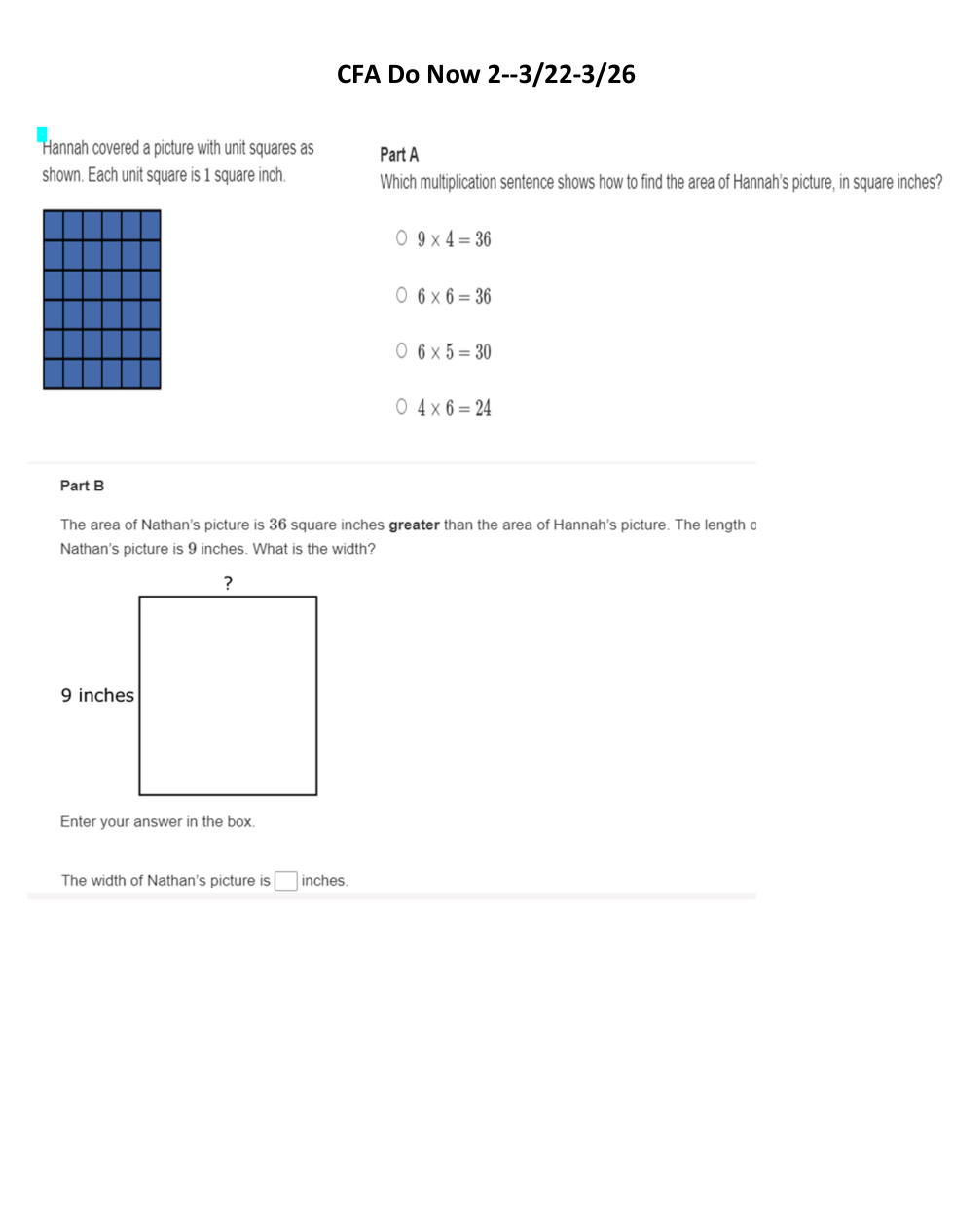 CFA 3/22 3rd Grade Math