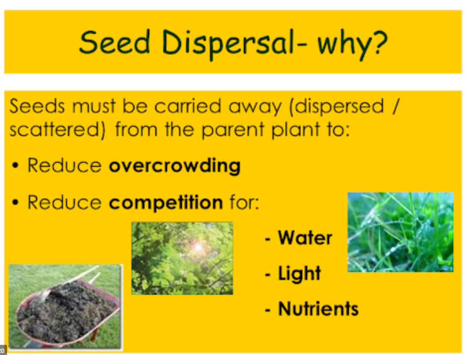 Seed dispersal is important because it reduced overcrowding and competition for water, light, and nutrients.