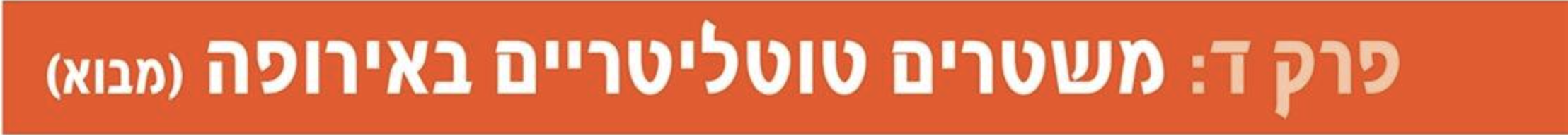 צפו בסרטון המשטרים הטוטליטרים באירופה במאה ה-20 מאת ד״ר רפי ואגו. ענו על השאלה מדוע מחקרים ודיונים נרחבים על משטרים טוטליטרים נערכו דווקא בתקופת המלחמה הקרה ? https://www.youtube.com/watch?v=NmnmVjyKmU4[10] לפחות שאלה פתוחה אחת ברמת חשיבה גבוהה